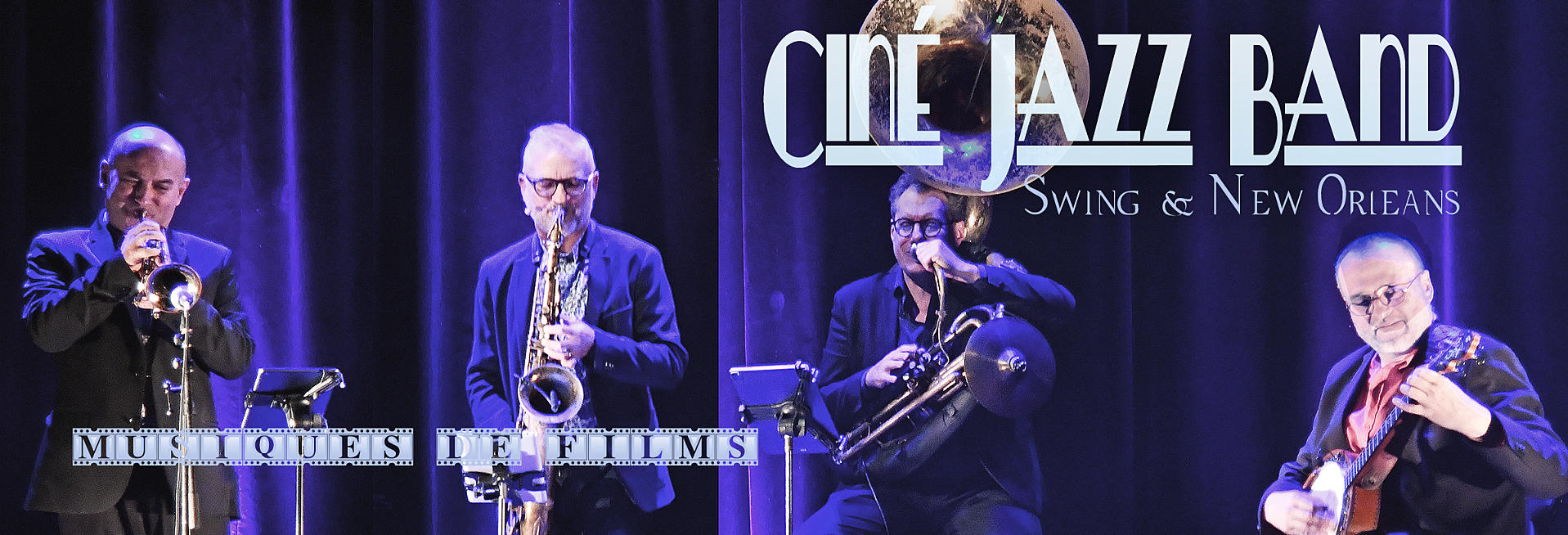 CINÉJAZZBANDestunquartetdejazzacoustique,dontle répertoireestconstituédemusiquesdefilmsinterprétées avec talent en version swing et New Orleans.Aussiefficaceenanimationderuequ'enconcertsurscène,legroupe privilégie l'interactivité et la bonne humeur ! Leursreprisesmusicales,aussibiencomposéesd'oeuvres cinématographiquestrèsconnuesquedefilmsplusconfidentiels,permettent de réaliser un véritable blind test divertissant très apprécié du public. De«StarsWars»,«LaBoum»,«JeandeFlorette»,«OutofAfrica»…en passantpar«LeRoiLion»et«Legrandblondavecunechaussurenoire», ily en a pour toutes les mémoires !