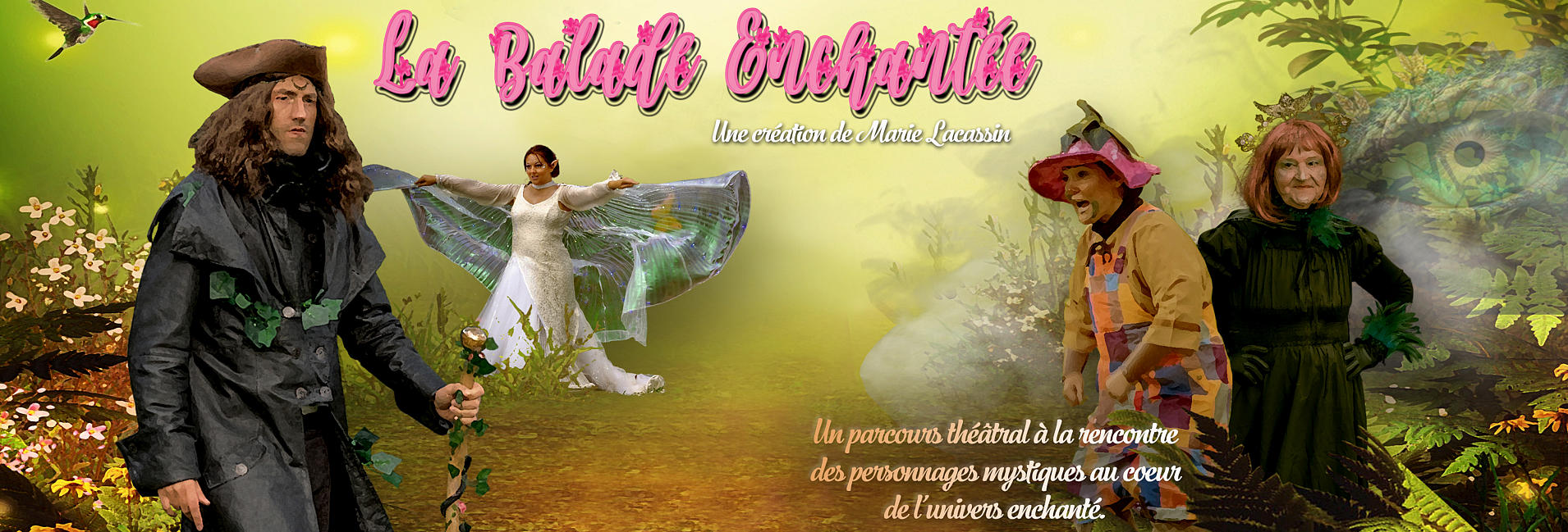 Unvoyageen5étapes,toutenpoésieetteintéd’humour,àla découverted’unenaturepeupléed’êtreslégendairesinterprétés par3comédiens,unedanseuseetunedragonneincarnéeparune voix off. Chacun ayant un message à transmettre à l’humanité.LaBaladeenchantéepeutêtreadaptéeàl’environnement:Forêts,parcs, bois,espacesverts…uusurd’autressitesquevoussouhaitezmettreen valeur ou bien faire revivre (patrimoniaux, culturels…). Ellepeutégalementsedéclinerenfonctionduthèmeetdelapériode comme Pâques, Noël, Halloween, Journées du Patrimoine etc.Àlafindduparcoursvousavezlapossibilitédeprolongerl’événementen ejoignantnoselfesquipoursuivrontl’initiationenanimantdesateliersde découvertedelanatureetdeslaboratoiresd’éveilssensorielset émotionnels.Uneconnexionànous-mêmes,auxautresetaumondequi nousentoure(pentacledesorcière,soinénergétique,peintureintuitive,test de l’odorat).Et flâneries en autonomie.Pour plus de magie les enfants peuvent également venir déguisés.Tous les personnages fantastiques et mystiques sont les bienvenus !
