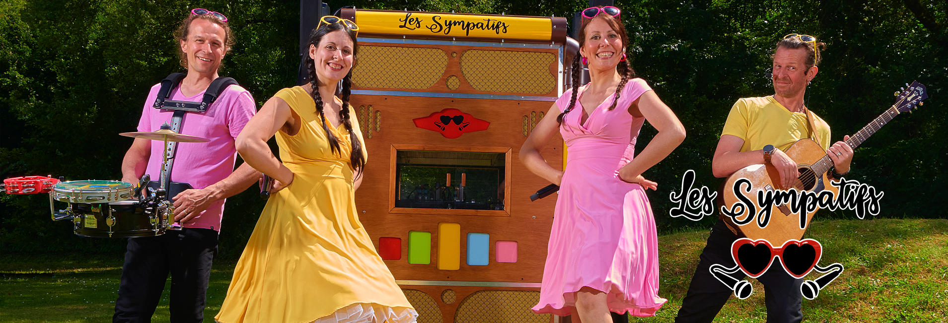 LesSympatifs,c’estunejoyeusebanded’artistesspécialiste de l’animation musicale mobile, déambulatoire et 100% festive.Avecleurjukeboxmotoriséouleursonorisationmobile,ilsvontàla rencontredupublicpourfairevibrervosrues,vosjardins,vos places... et en salles pour tout événement.